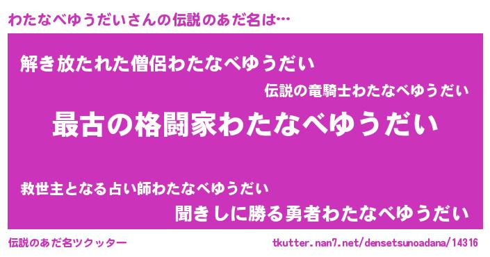 | 意味不明あだ名 | 『わたなべゆうだいフォーエバー』 |