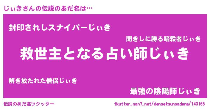 | ヒーロー風カッコイイあだ名 | 『天空の使者じぃき』『仮面ジィダー』 |