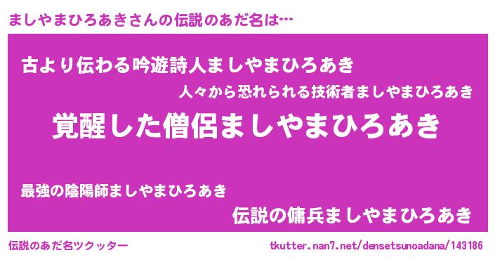 | 意味不明あだ名 | 『住所不定無職ましやまひろあき(65歳)』 |