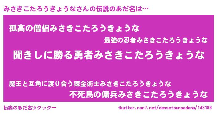 | 意味不明あだ名 | 『永久保存みさきこたろうきょうな』 |