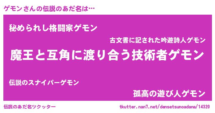 | 男性向けラノベタイトル風あだ名 | 『転生したらゲモンだった件』 |