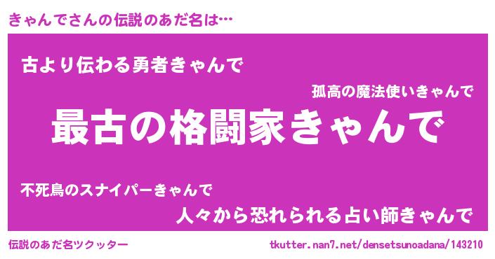 | 意味不明あだ名 | 『きゃんでフォーエバー』『自称きゃんで』 |