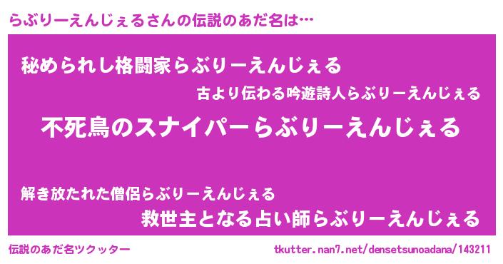| 意味不明あだ名 | 『住所不定無職らぶりーえんじぇる(95歳)』 |
