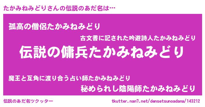 | 意味不明あだ名 | 『住所不定無職たかみねみどり(39歳)』 |
