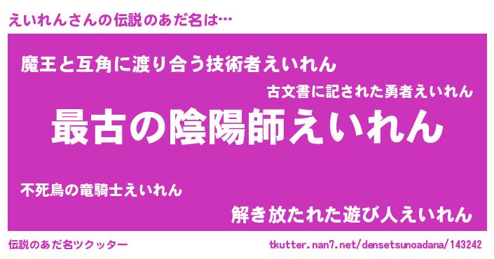 | 意味不明あだ名 | 『えいれんフォーエバー』『自称えいれん』 |