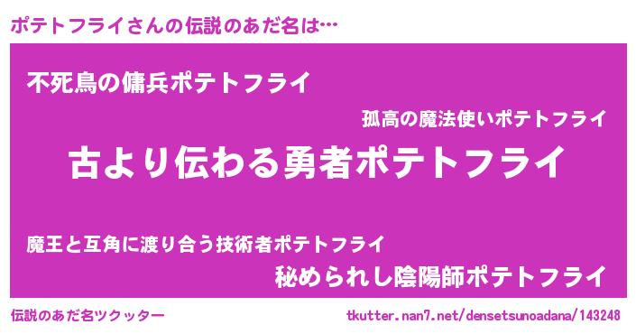 | 意味不明あだ名 | 『永久保存ポテトフライ』 |