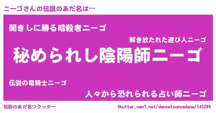 | ヒーロー風カッコイイあだ名 | 『ウルトラニーゴマン』『ネオニーゴ』 |
