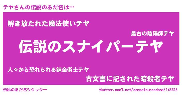 ファンタジー風あだ名 | 『ゼテヤトゥ』『テヤフェル』 |
