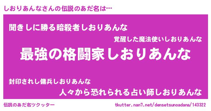 | 意味不明あだ名 | 『しおりあんなフォーエバー』 |