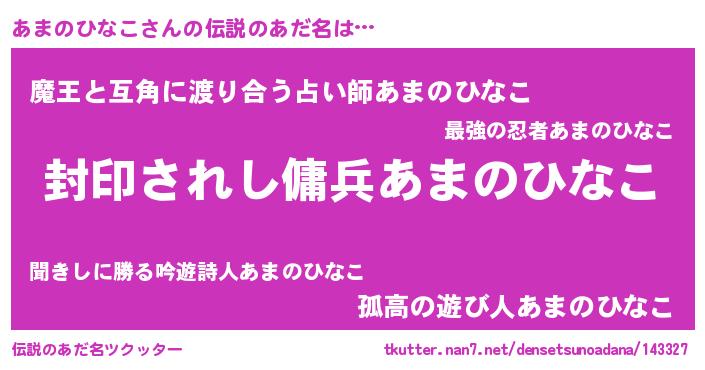 | 意味不明あだ名 | 『自称あまのひなこ』 |