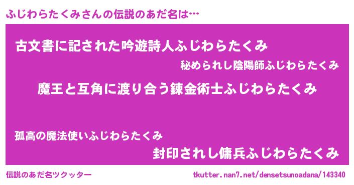 | 男性向けラノベタイトル風あだ名 | 『転生したらふじわらたくみだった件』 |
