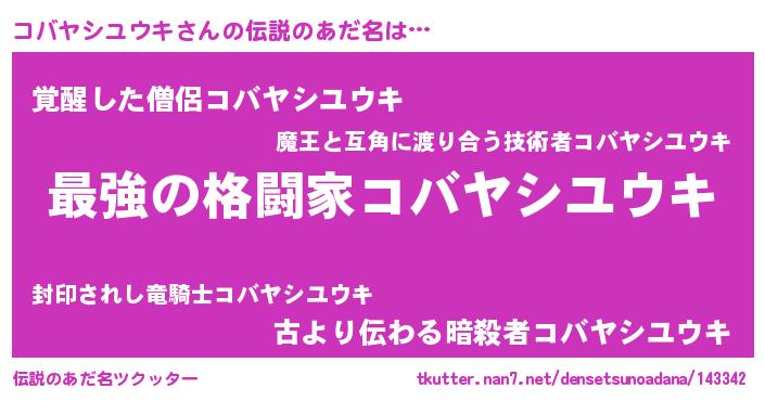 | ファンタジー風あだ名 | 『エターナルコバヤシユウキー』 |