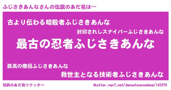 | 男性向けラノベタイトル風あだ名 | 『魔弾の王とふじさきあんな』 |