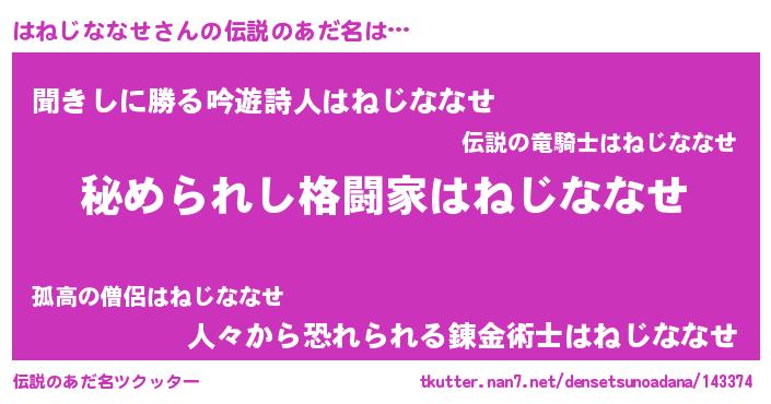 | 意味不明あだ名 | 『はねじななせフォーエバー』 |