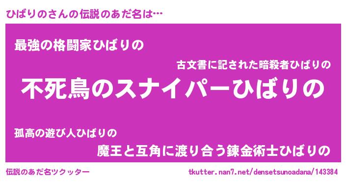 | 胡散臭い通販商品みたいなあだ名 | 『テレビで話題の冬虫夏草…その名も「ひばりの」』 |