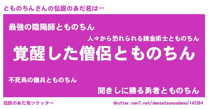 | 男性向けラノベタイトル風あだ名 | 『とものちんの嫁は女の子じゃないと思った?』 |