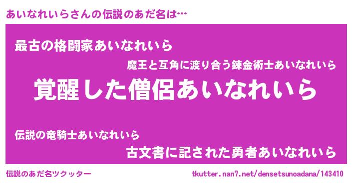 | ポケモン風あだ名 | 『ヒアイナレイラ』『アイナダネ』 |