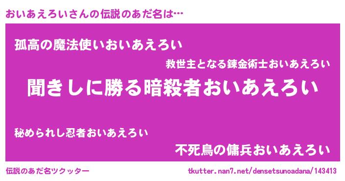 | 意味不明あだ名 | 『永久保存おいあえろい』 |