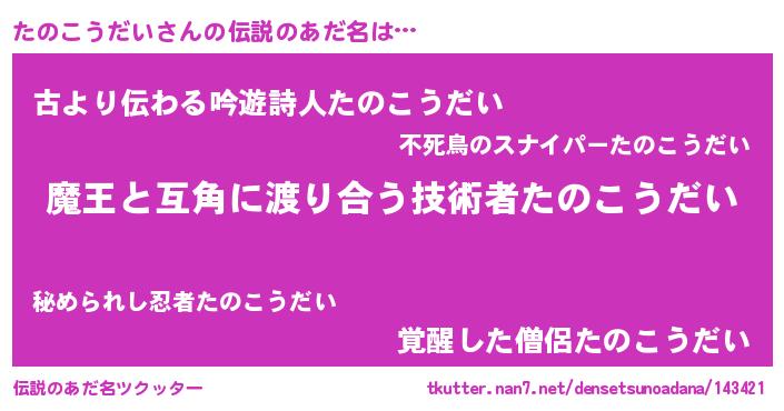 | 意味不明あだ名 | 『住所不定無職たのこうだい(9歳)』 |