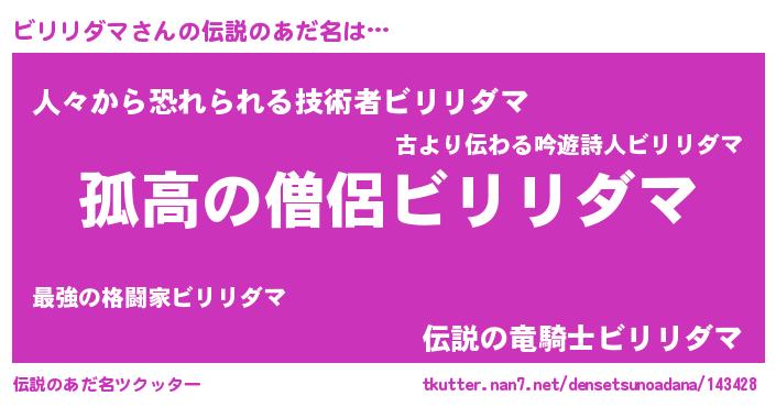 | ポケモン風あだ名 | 『ビリセウス』『メロビッリ』 |