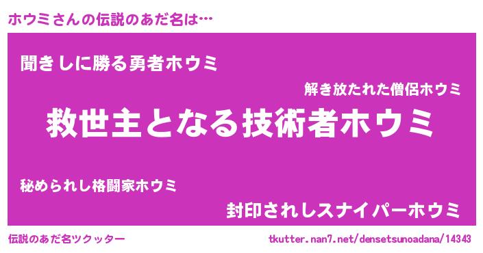 | ヒーロー風カッコイイあだ名 | 『慈愛の使者ホウミ』『ネオホウミ』 |