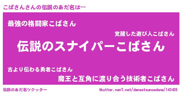 | 胡散臭い通販商品みたいなあだ名 | 『必ず成功する霊験あらたかなお札…その名も「こばさん」』 |