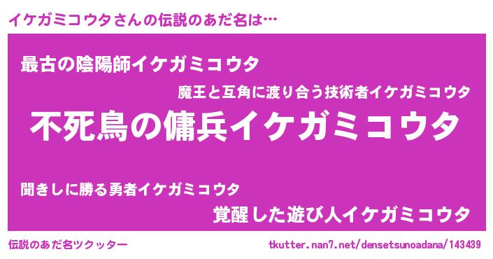 | 男性向けラノベタイトル風あだ名 | 『イケガミコウタアートオンライン』 |