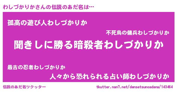 | ヒーロー風カッコイイあだ名 | 『ネオワシヅカリカ』『魔戒騎士ワシ』 |