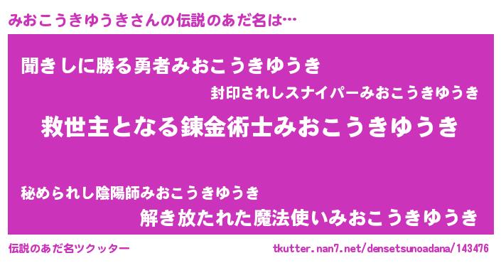 | ヒーロー風カッコイイあだ名 | 『天空の使者みおこうきゆうき』 |