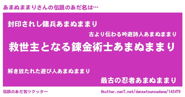 | 女子向けラノベタイトル風あだ名 | 『死神あまぬままりの再婚』 |
