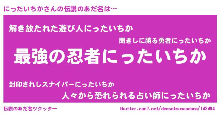 | 意味不明あだ名 | 『住所不定無職にったいちか(39歳)』 |