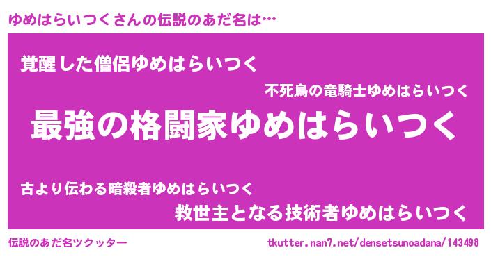 | 意味不明あだ名 | 『ゆめはらいつくフォーエバー』 |