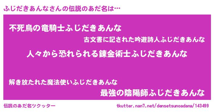 | 男性向けラノベタイトル風あだ名 | 『フジダキアンナスレイヤー』 |