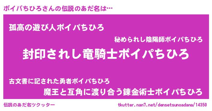| ヒーロー風カッコイイあだ名 | 『仮面ボイダー』『スーパーボイパチヒロ』 |