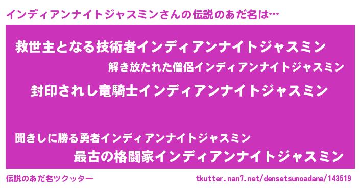 | ヒーロー風カッコイイあだ名 | 『スーパーインディアンナイトジャスミン』 |