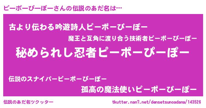 | 意味不明あだ名 | 『住所不定無職ピーポーぴーぽー(59歳)』 |