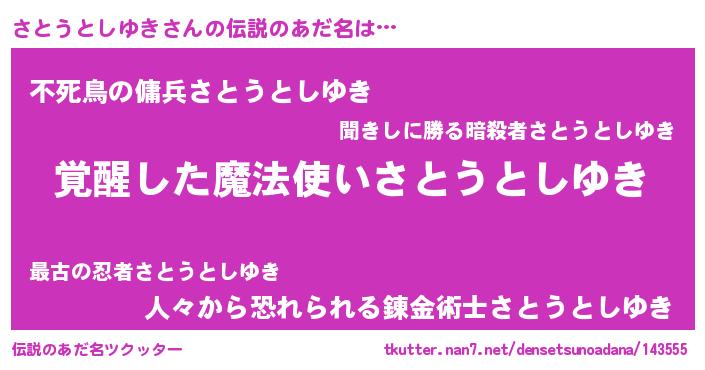 | 欧米人風あだ名 | 『ウサインさとうとしゆき』 |