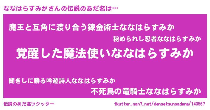 | 意味不明あだ名 | 『とにかく怪しいななはらすみか』 |