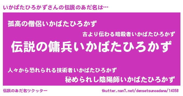 | ヒーロー風カッコイイあだ名 | 『スーパーイカバタヒロカズ』 |