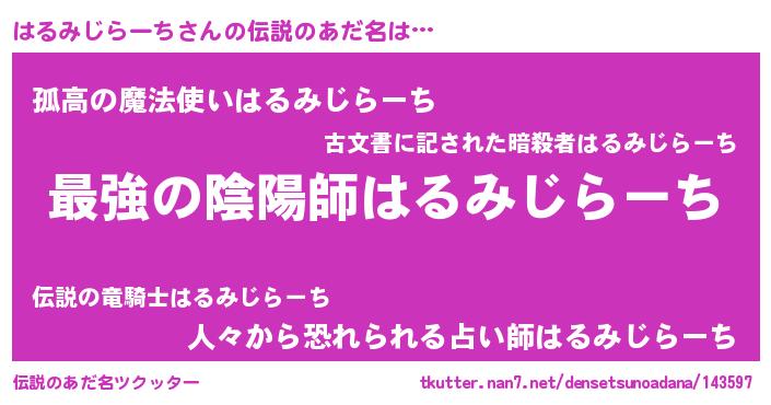 | ファンタジー風あだ名 | 『エターナルハルミジラーチー』 |