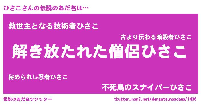 | ヒーロー風カッコイイあだ名 | 『幻影騎士ヒサ』『正義の使者ひさこ』 |