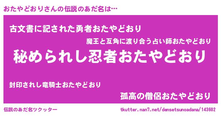 | ヒーロー風カッコイイあだ名 | 『超時空戦士オタヤドオリ』 |
