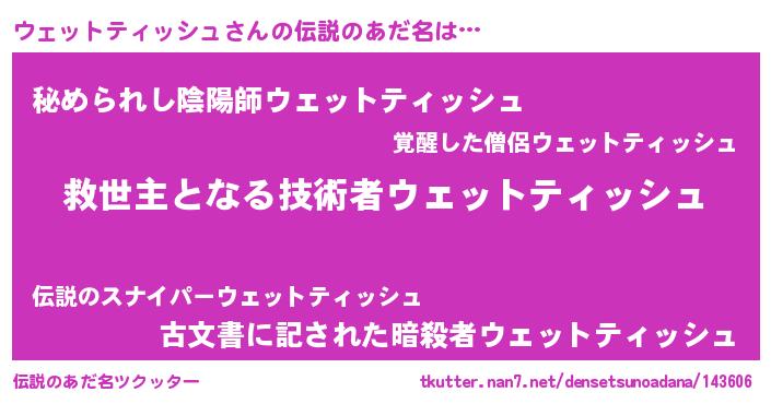 | 男性向けラノベタイトル風あだ名 | 『ノーゲーム・ノーウェットティッシュ』 |