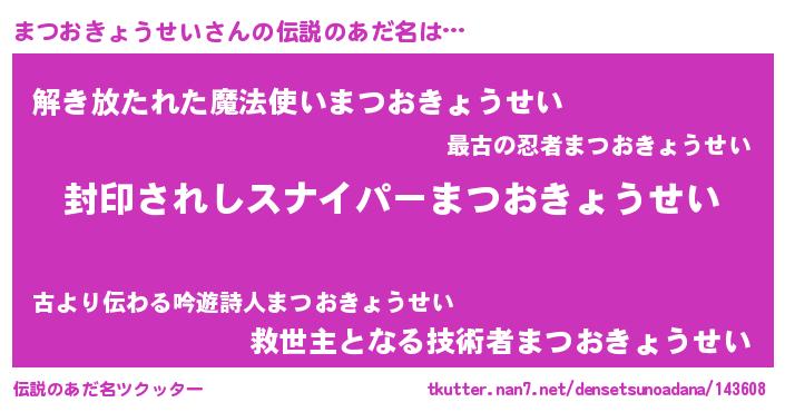 | 胡散臭い通販商品みたいなあだ名 | 『億万長者になれる霊験あらたかなお札…その名も「まつおきょうせい」』 |