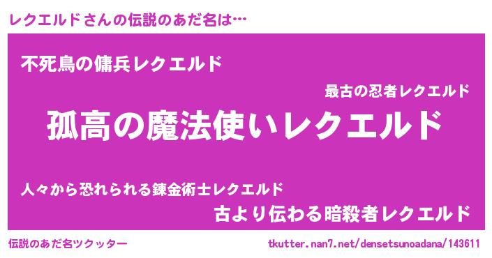| 男性向けラノベタイトル風あだ名 | 『レクエルドスレイヤー』 |