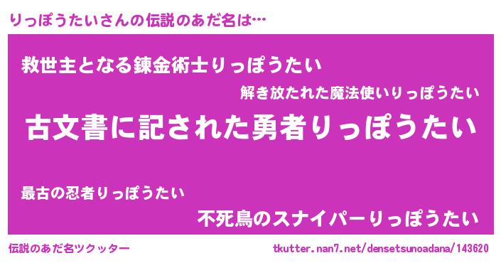 | 意味不明あだ名 | 『永久保存りっぽうたい』 |