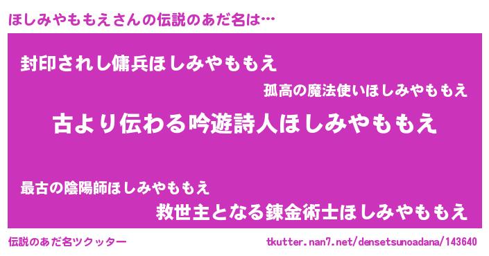 | 男性向けラノベタイトル風あだ名 | 『転生したらほしみやももえだった件』 |