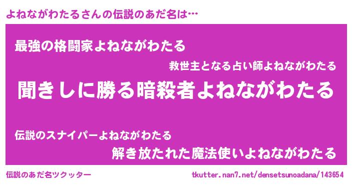 | 意味不明あだ名 | 『永久保存よねながわたる』 |
