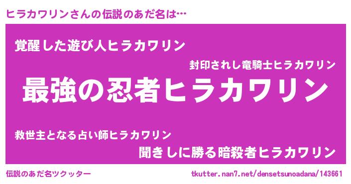 | ファンタジー風あだ名 | 『エターナルヒラカワリンー』 |