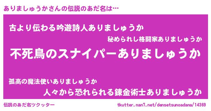 | ヒーロー風カッコイイあだ名 | 『スーパーアリマシュウカ』 |